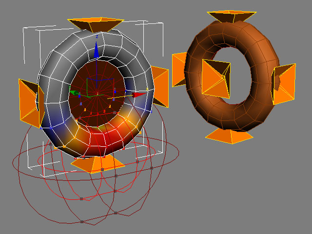 La idea de usar un toroide (un donut…) la impuso el modelador al diseñador. Con pocos huesos se podía deformar perfectamente y ensanchando o apretando el labio superior o inferior se podían conseguir diferentes tipos de bocas.
